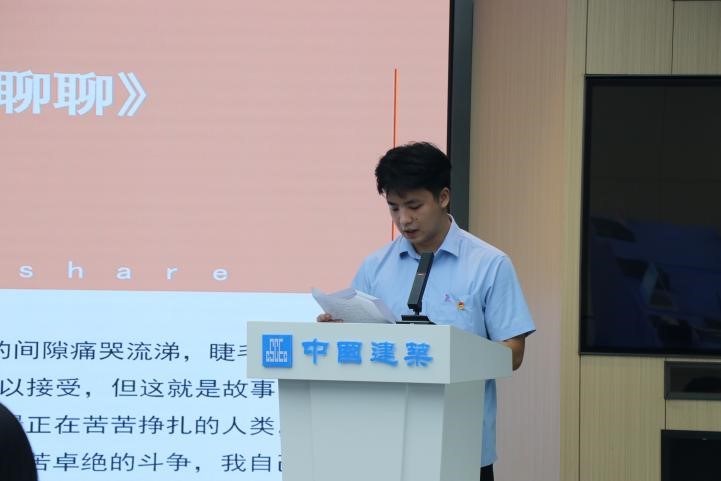 活動首先由承辦單位中建八局南方公司基礎(chǔ)設(shè)施分公司代表廖思程同志為活動致辭。他提到,讀書不是為了滿足“書中自有黃金屋,書中自有顏如玉”的功利心,而是通過實(shí)現(xiàn)自身內(nèi)在的淡定和從容,達(dá)到自我和外在的容納與協(xié)調(diào),從而遇見更好的自己。
