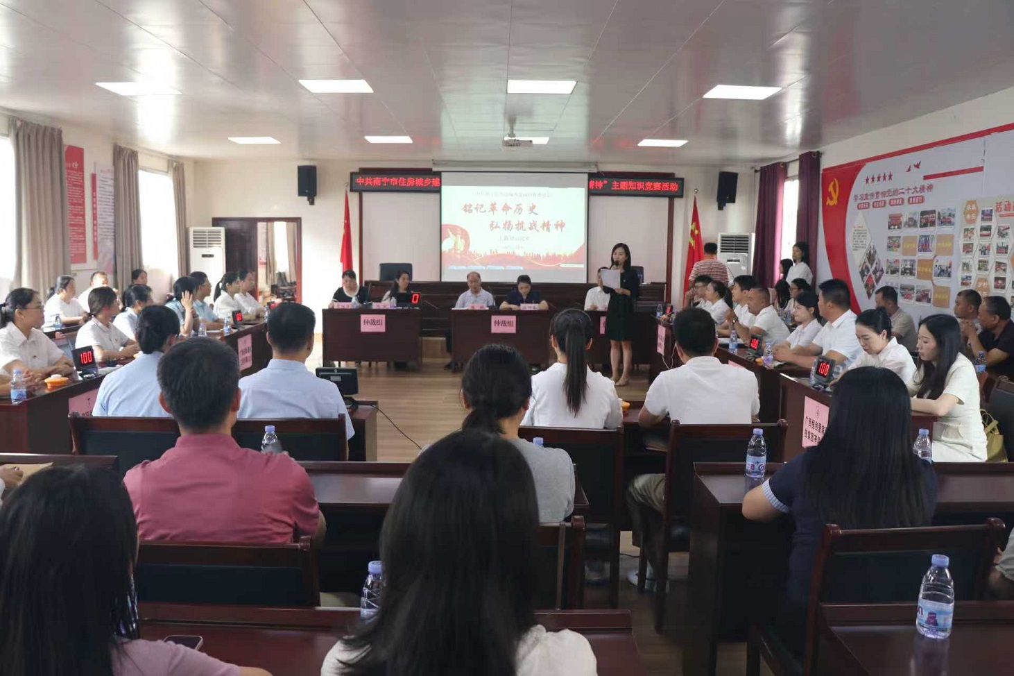 本次知識(shí)競(jìng)賽,意在引導(dǎo)全體黨員深入學(xué)習(xí)抗日戰(zhàn)爭(zhēng)和世界反法西斯戰(zhàn)爭(zhēng)的壯闊歷史,深刻理解其偉大意義。8月28日上午,知識(shí)競(jìng)賽在市住建行業(yè)黨委副書記陳琳同志的致辭中熱烈開展。10支參賽隊(duì)伍由市住建行業(yè)黨委所屬各個(gè)兩新黨組織組成,各隊(duì)勢(shì)均力敵,競(jìng)爭(zhēng)非常激烈。
